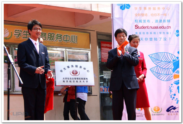 3月30日中午,我校學生事務服務中心揭牌暨奧藍信息系統(學生版)啟用儀式在將軍路校區舉行。校黨委副書記、副校長陳夏初,宣傳部、研工部、教務處、財務處、國資處、保衛處、后勤集團、將軍路校區、圖書館、信息中心、團委、學生處等相關職能部門的領導,以及各學院的黨委副書記、輔導員老師、各大學生組織的主要負責人出席了儀式。儀式由學生處副處長侍旭主持。 儀式上,學生事務服務中心主任宋雙佑同學帶領他的團隊進行了精彩的中心展示,簡要介紹了中心業務,并向師生發出熱烈的歡迎,展現了中心成員的良好風貌。隨后,陳書記與宋雙佑同學共同為我校“大學生自主管理實踐基地”學生事務服務中心揭牌,開啟了中心發展的新征程。侍旭向現場師生介紹了我校奧藍信息系統(學生版)從籌備到試運行到全面推行的整個過程,并為大家呈現了系統目前實現的各項功能。 隨后,陳夏初同志走到電腦前,啟動了奧藍信息系統(學生版),當“奧藍信息系統(學生版)開通啦!”在屏幕上閃耀時,臺下響起了熱烈的掌聲,共同慶賀這一時刻的到來。陳夏初對學生事務服務中心揭牌暨奧藍信息系統(學生版)啟用這兩件喜事表示了祝賀。他強調,學生事務服務中心與學生版奧藍信息系統作為兩項新生事物,需要同學們的積極參與,并不斷改進完善,使之成為南航學生成長發展的不可或缺的重要平臺,通過這樣的平臺讓學生受鍛煉,長才干。他還對支持學生自主管理的學校相關部門表示了感謝, 肯定了南航全員育人的良好局面。 儀式結束后,現場的各位領導和嘉賓在學生事務服務中心成員的帶領下參觀了事務服務大廳。新華社、《中國教育報》、《江蘇教育報》、江蘇衛視、南京十八頻道等多家校內外知名媒體對儀式進行了采訪報道。 據了解,我校學生事務服務中心從2006年開始嘗試運行,是一支以學生“自我管理、自我服務、自我發展”為目標導向的,全部由學生組成的自主服務團隊。經過多年探索實踐,現在的學生事務服務中心運作已日趨成熟,工作業務也已拓展到信息咨詢、業務辦理、權益維護等范疇。還形成了了大廳服務、熱線電話、網絡平臺等五大服務渠道。中心以“為每一位學生提供高效、便捷、優質的一站式服務”為使命,正朝著專業化的方向邁進。 奧藍信息系統(學生版)“http://student.nuaa.edu.cn”是一個為便利學生學習生活而全新開發的校園網絡平臺。經過多年的準備和醞釀,2010年9月起正式投入研發,10月份開始在2010級本科生中試用。目前系統已經實現了學生基本信息自主錄入、個人成長記錄、各級信息發布(校級、院級、年級、個人)、問卷調查、網上測試、離返校登記、校外走讀申請、特別獎學金申報、國家助學貸款申請、輔導員測評、校園活動預告、常用資料下載等功能。與此同時,心理咨詢和職業生涯咨詢網上預約、網上投票等功能也即將相繼實現,力爭為學生學習生活提供一站式的便捷服務。隨著系統的完善和推進,它將逐步成為我校學生信息獲知的重要平臺、學生成長過程的重要見證、學生分層分類管理的重要依據以及網上思想政治教育的重要陣地。學生版奧藍信息系統將成為同學們不可或缺的成長伙伴。 學生事務服務中心和奧藍信息系統(學生版)是我校學生自主管理的兩個重要平臺,二者相輔相成。實體與網絡的結合全方位服務了學生成長成才,是我校服務育人的一次重要嘗試。