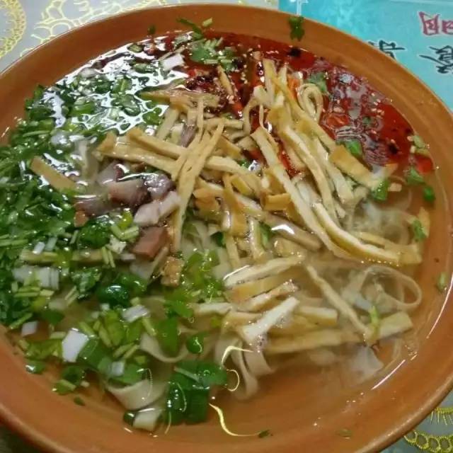 張掖大肉面酥爛醇香,湯鮮味濃,蔥花撒一層,辣油從酥爛的肉片上淌進(jìn)面湯,搭配著一碟小菜,面的軟滑筋道與湯的鮮美齊入口,久別的熟悉襲來,縈繞舌尖。
