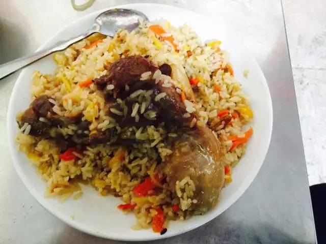 金黃的米飯,加上一塊鴨皸,糯軟的口感夾雜著鴨皸的嚼勁,組成一碗色香味俱全的抓飯。紅點(diǎn)綴,黃映襯,令人垂涎。