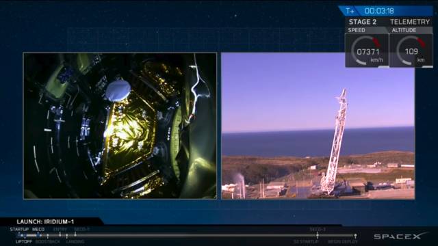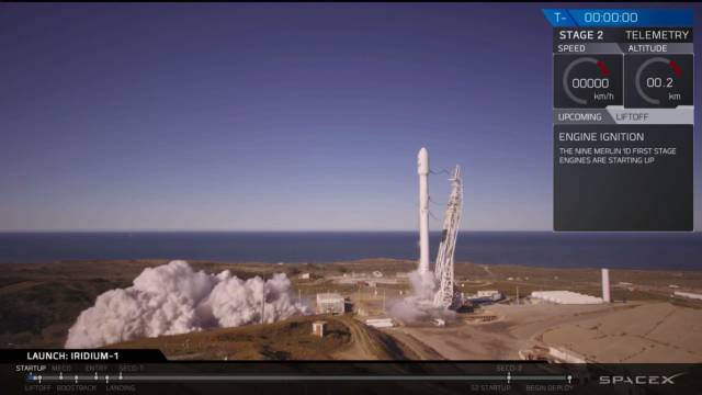 1月14日,在美國加利福尼亞州范登堡空軍基地,“獵鷹9”火箭發射升空。在經歷去年9月爆炸事件后,美國私企太空探索技術公司的“獵鷹9”火箭14日重返太空,一箭十星,成功把銥星通訊公司首批衛星發射至目標軌道。此后,火箭第一級首次成功實現在太平洋中一艘無人船上軟著陸。