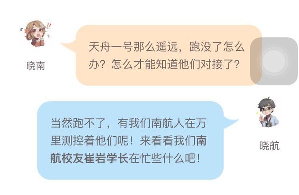“天舟一號”發射成功,崔巖學長接好了接好空中測控的第一棒,我們為他感到驕傲!曉南曉航堅信未來會有更多的NUAAers接過科研這根“接力棒”,為我國航空航天事業做出更多貢獻!