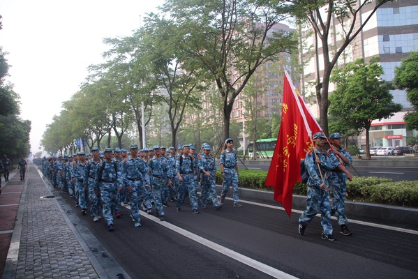 此次拉練,尖兵班由教官擔任,先行出發,負責前方偵查警戒任務。各營成六路縱隊在尖兵班后50米處跟進,以一營為先鋒;后方警戒班由教官擔任,負責警戒與收容任務。各營之間相距20米。