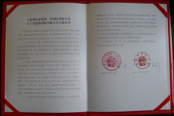 2012年2月,工業(yè)和信息化部與中國民用航空局共建南京航空航天大學協(xié)議在北京正式簽署