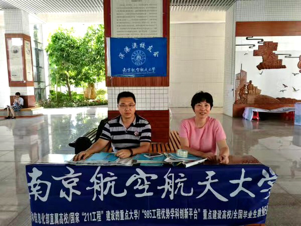 鼓勵在校學生參與招生宣傳。積極發動在校學生參與招生宣傳工作,不斷探索新的模式,從2011年啟動“啟航行動—南航學子中學行”,幾十支團隊,500余名學生走進中學,到現在每年發動“啟航行動—南航學子中學行”、“啟航行動—南航學子歸母校”、“啟航行動—我為母校當伯樂”三大專項活動,全校1500余名學生進入中學開展各項宣傳活動,與學弟學妹們面對面零距離交流大學校園文化,傳授學習方法及心得,培養中學生創新意識,普及三航知識,宣揚航空報國的崇高理念。回訪中學上千所,受眾達上百萬人,活動范圍覆蓋了全國80%的省市。活動深受廣大中學師生的喜愛,受到各方的好評,并被多家中央、地方媒體專題報道。數百名應屆畢業生協助我校招生老師,走進中學,為母校當伯樂,做好招生宣傳工作。