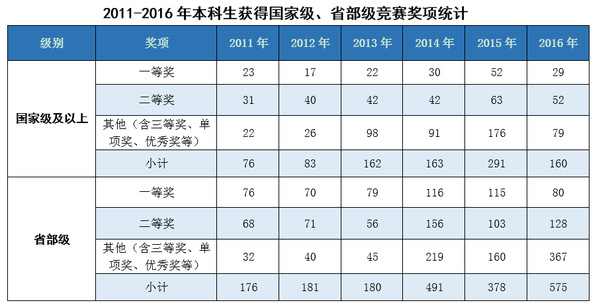 學(xué)校秉持“寓創(chuàng)新于實(shí)踐,在實(shí)踐中體驗(yàn)創(chuàng)新”的理念,搭建多維平臺,支持學(xué)生參加科創(chuàng)競賽,學(xué)生能力不斷提升,在各類重要競賽中取得了令人矚目的成績。六年來,3000余人次獲得國家級以上競賽獎項(xiàng),5000余人次獲得省部級競賽獎項(xiàng)。在近六屆全國“挑戰(zhàn)杯”大學(xué)生課外科技作品競賽中,獲得特等獎8項(xiàng)、一等獎14項(xiàng),5次獲獎排名位居全國前三;獲得空客全球大學(xué)生航空創(chuàng)意競賽總冠軍;2013、2014連續(xù)獲得“中國軟件杯”全國大學(xué)生軟件設(shè)計大賽特等獎;2016年獲國際能源挑戰(zhàn)賽特等獎。在“創(chuàng)青春”全國大學(xué)生創(chuàng)業(yè)大賽、中國“互聯(lián)網(wǎng)+”大學(xué)生創(chuàng)新創(chuàng)業(yè)大賽、國際無人飛行器創(chuàng)新大獎、全國數(shù)學(xué)建模競賽、全國大學(xué)生電子設(shè)計競賽、全國大學(xué)生周培源力學(xué)競賽等大賽中也屢屢折桂。