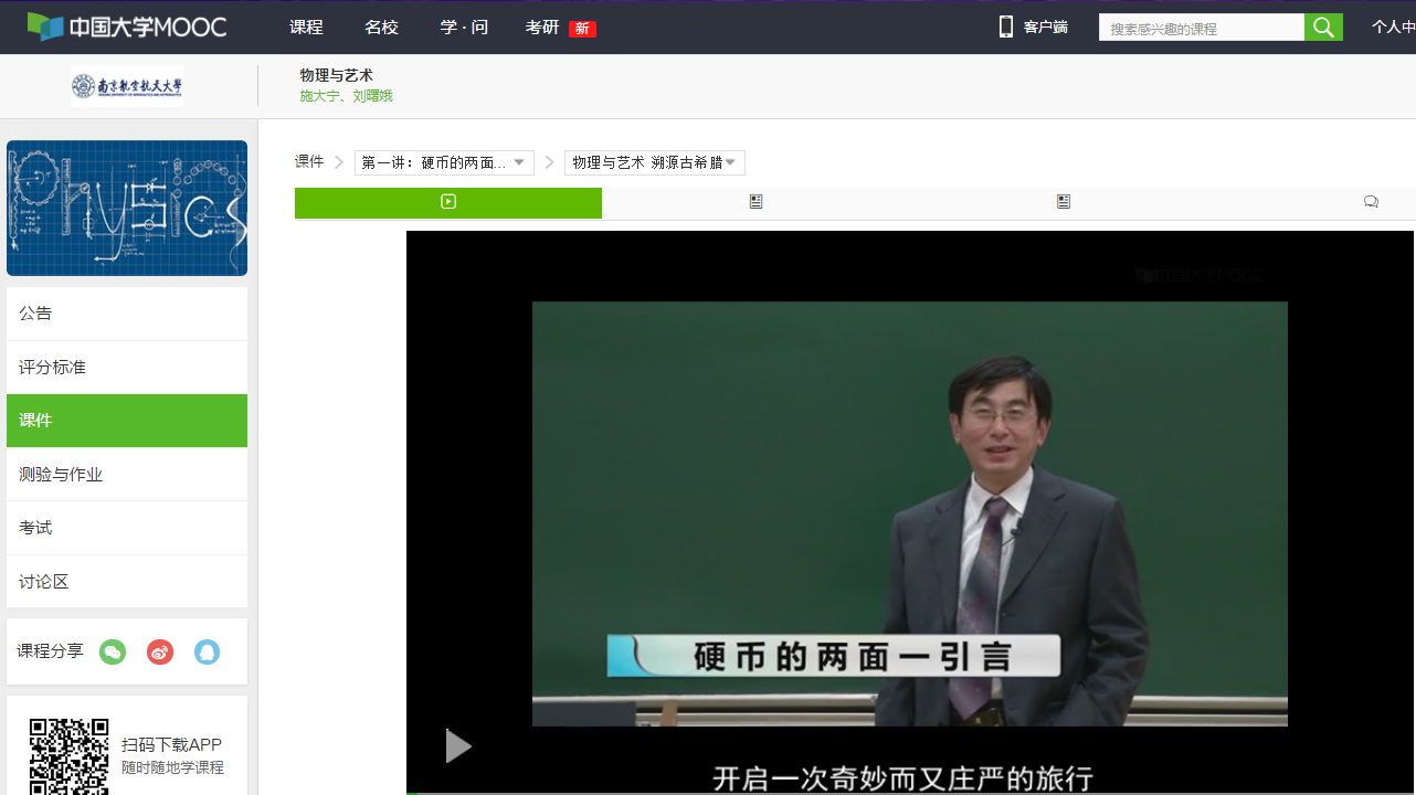 《物理與藝術(shù)》入選國家資源共享課、國家視頻公開課、中國大學(xué)MOOC課程、江蘇省在線開放課程