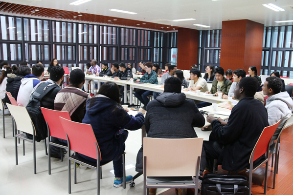 在特色服務(wù)方面,2014年,為適應(yīng)我校國際化辦學(xué)不斷增長趨勢,我館建立“留學(xué)生信息服務(wù)中心”,為我校來華留學(xué)生開辟專屬空間,由專業(yè)館員提供服務(wù)咨詢,中心依托圖書館新館良好的硬件環(huán)境和豐富資源,有海外求學(xué)和工作背景的館員隊伍,開展形式多樣的活動。