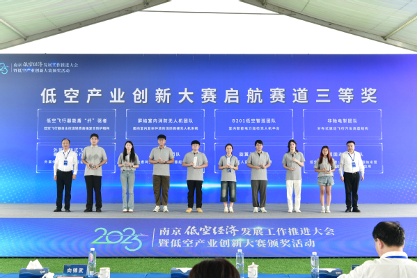 隨后,大賽頒獎儀式在南京低空經濟發展工作推進大會上舉行,工業和信息化部裝備工業二司、工業和信息化部國際經濟技術合作中心、江蘇省工業和信息化廳、南京市及學校有關領導出席活動并頒獎。